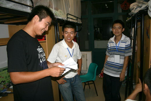 10点钟,各位干部来到了自己负责的宿舍。新生们对各位学生会干部的到来表示热情的欢迎,他们纷纷围在干部们的周围,热情的聊了起来。各位干部都倾囊相授,他们首先询问了新生们初来学校的各种感受以及生活上的问题。接着,各位干部就大学学习与每一位新生进行了深入的交流,并告诫新生们:大学是锻炼自我的一个很好的平台,一定要抓紧每一次机会来提高自己各方面的能力。各部门的负责人也向各位新生介绍了自己的部门,为以后招新打下一个基础。