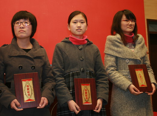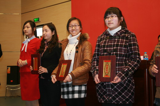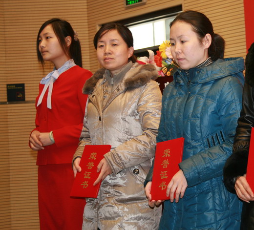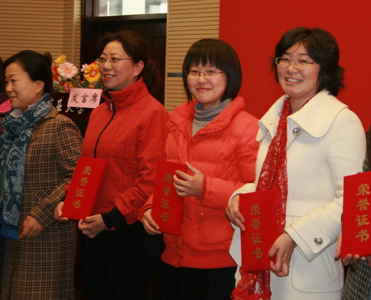 副院长张淑娟宣读了表彰决定。我院李秀老师荣获校“先进妇女工作者”荣誉称号;樊秀娟老师荣获“妇女工作积极分子”称号;张丹获得校“十佳女大学生”、唐玉华获得校“优秀女学生干部”荣誉称号。主席台领导分别向受到表彰个人颁奖。