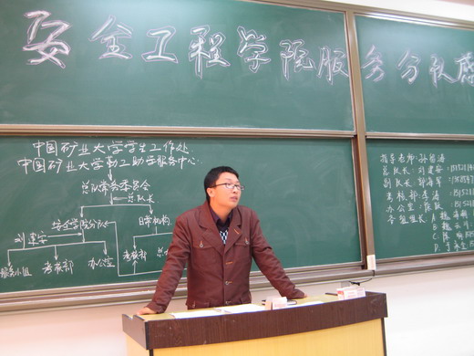 刘建安首先介绍我院服务分队的组织性质、宗旨、指导思想、主要任务及组织目标。我院服务分队是在校学工处指导下,在校勤工助学服务中心以及校义务服务总队领导下的一支公益性服务队伍,指导热衷于社会义务服务的同学开展公益活动,为广大学生提供一个感恩他人、回报社会、锻炼自己能力的平台。刘建安代表广大贫困建档的同学们说“在大家最困难的时候,是学校帮助了我们,在我们学有余力的时候,更应当充分发挥主动性,做实事回报学校和他人。”在回顾服务分队过去两年所取得的成果后,刘建安指出服务分队的发展将面临的现实问题并鼓舞广大队员要齐心协力,培养感恩意识、公众意识和责任意识,努力将服务分队建设成为国产精品
