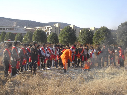 2:30左右,我院消防志愿者们在灭火演练场地集合并在老师安排下按要求安放好火盆、干粉灭火器等灭火演练设施。时至3:00.,演练正式开始。在我院消防志愿者的组织疏导下,每十名教职工分为一组,依次进行灭火演练。我院志愿者们同时分成多个小组,分别维持现场秩序,疏导教职工进出现场并协助教职工合理使用灭火器材。在我院消防志愿者和个教职员工的共同努力下,现场秩序井然。经过一个多小时的灭火演练,本次活动接近尾声。在我院消防志愿者们与保卫处老师合影留念后,本次灭火演练圆满结束。