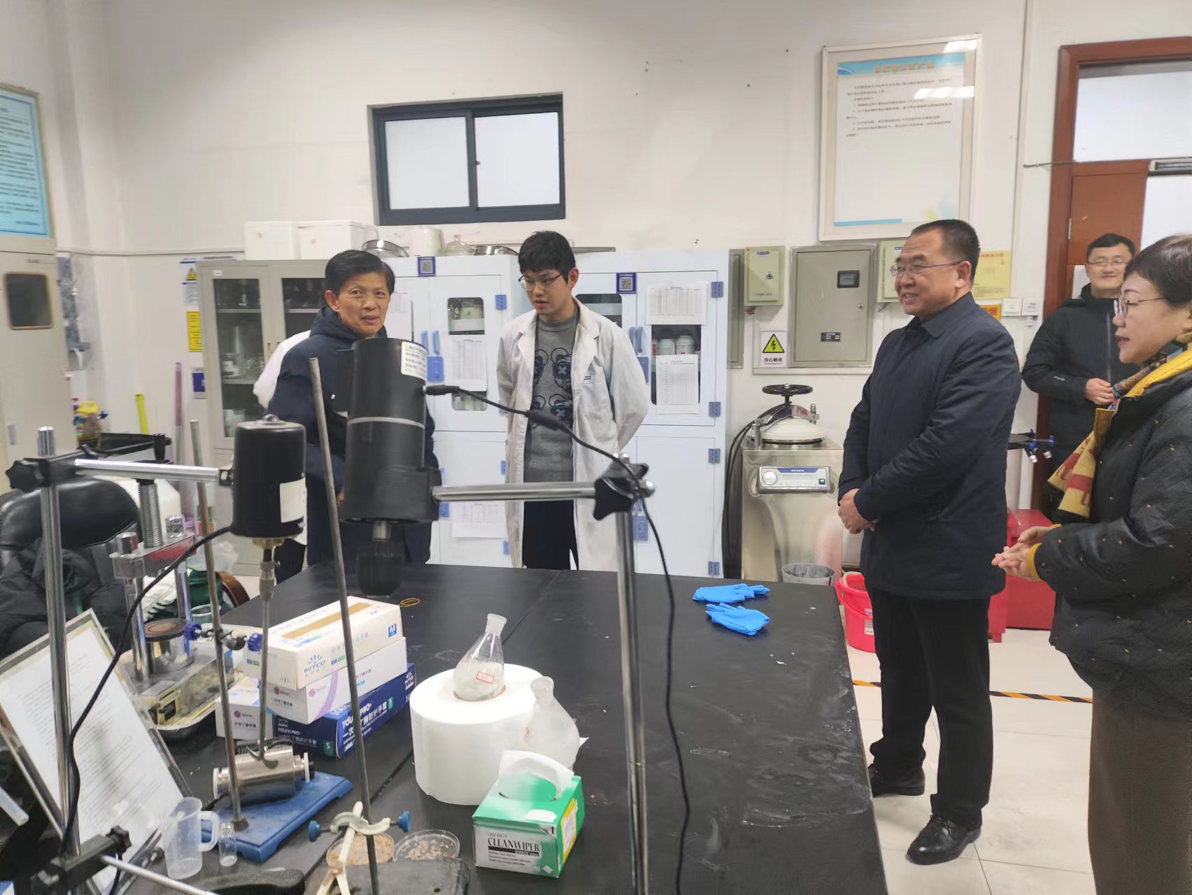 宋学锋校长一行先后走访了矿业科学中心C区大厅和二层实验室,重点检查了实验场所的危险化学品安全、实验室水电安全、卫生环境等,并针对个别实验室存在的问题与国产精品