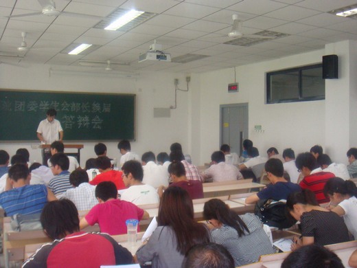 为更好的组建学生会,传承和发扬我院学生会的精神,2011年6月26日,我院2011-2012届团委学生会部长换届答辩会于教五A206成功举行,主席团的七位成员均出席了本次答辩会并担任评委。来自10级的约60名同学参加了本次竞选答辩会。