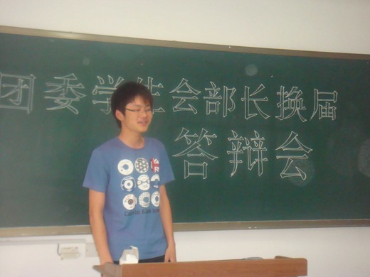 本次答辩会由团委副书记李念泽主持,根据竞选部门分下午和晚上两场举行。各个部门的竞选人员通过抽签决定答辩次序,每人有三分钟的自我陈述和两分钟的答辩时间。