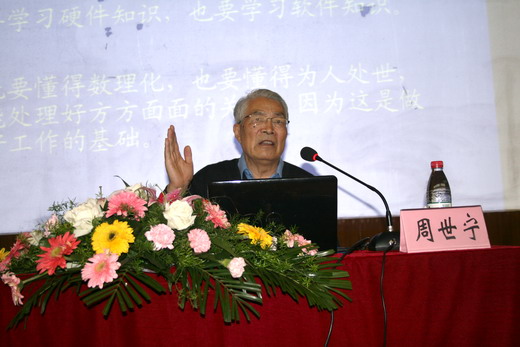 林院长致辞结束后,在全场热烈的掌声中,周世宁院士走上台,为我院研究生“安全科技论坛”揭幕,并为在场的老师与同学带来研究生“安全科技论坛”的首期学术报告。周院士以在书店购书时偶然看见的考题开场,认为“只要功夫深,铁球也能磨成针”,博得全场热烈的掌声与笑声同时,引人深思。新一批的诺贝尔奖获得者已经公布,为何又与中国无缘?周院士认为,我国应试教育限制了同学们的自主思考能力,致使同学们普遍缺乏创新意识。但他同时指出,盲目的创新同样是不可取的,学习是创新的基础,而创新则是学习的目的,两者密不可分。创新一旦失去对知识的真正理解的支撑,就会变成盲目的创新,像“永动机”一样站不住脚。在谈及学习的方法和技巧时,周院士更形象的将数理化等基础知识比作硬件,将人际关系比作软件,周院士强调,要真正学深学透学会硬件知识是十分不易的,所以我们应当恭恭敬敬的学习,千方百计的推敲,而仅仅学习硬件知识是远远不够的,软件知识也同样重要;对硬软件知识的全面学习,才是提高学习效率和做好工作的必要条件。为了让同学们更有效的提高学习和工作效率,周院士还向同学们分享了自己的“极限研究法”。周院士介绍说,运用极限判别法能在看似复杂的大系统中排除无关参数和次要参数,快速找出主要参数,深入研究,进而解决问题。在分享自身的成长经历时,周院士谈到,自己正是凭借“极限判别法”,才能在包头矿务局的一次地下矿井气压测量错误中快速找到原因并解决问题。周院士告诫同学们,不能满足于现在取得的一点成绩就停止钻研,应该多思考,多提问,边学边问,才能不断充实自我,取得更好成绩。在互动环节中,周院士不仅运用专业知识解决了许多困惑同学们许久的问题,更借回答提问的机会鼓励同学们在学习的道路上相信自己,刻苦学习,勇于创新!