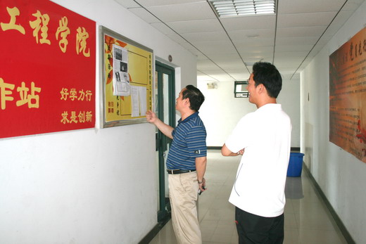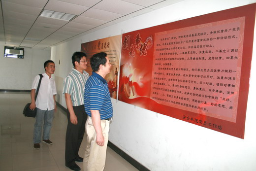 值建党九十周年和我院深入开展党员创先争优活动之际,6月8日上午11时左右,我院党委书记章毛平、党委副书记钱雄来到梅苑3号楼学生党员工作站,了解学生党员工作站的建设情况,并提出进一步完善党员工作站的宝贵意见。辅导员孙留涛、刘筱婕、李成刚、刘永杰,党员工作站站长徐跃陪同视察。