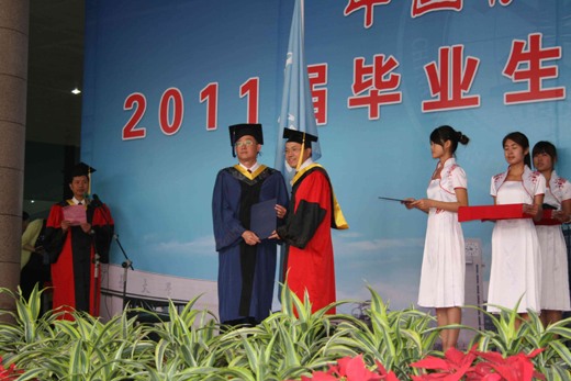 2011届研究生学位授予仪式在南湖校区北门广场隆重举行,我院113名身着学位服的研究生满怀喜悦参加了仪式。校党委书记邹放鸣、我院王德明院长、教学副院长李增华、科研副院长林伯泉以及我院多位教授出席了授予仪式。