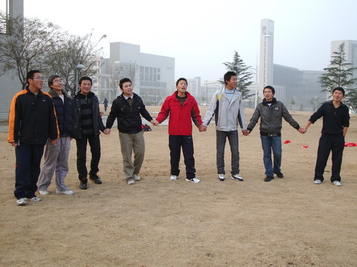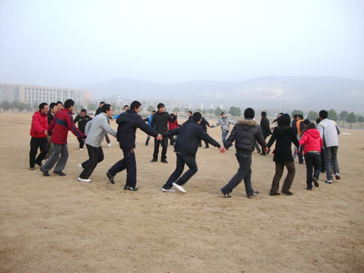 活动分为“两人三腿”“梅花朵朵开”“心有千千结”以及“智能组装”四个单元组成。活动开始,所有参与成员分成四组进行两人三腿比赛。同学们在领跑者的带领下一起奋斗,充分的感受到团队的合作精神和凝聚力。在这种跌跌撞撞的氛围中同学们更是感受到了团结协作的重要性。接着进行的多人围圈活动,在组织者叫出只有一人落单的梅花数时,有的同学被整个集体放弃。领导者对此进行了讨论,当落单同学说出自己“失望加绝望”时,所有人陷入了沉默。在组织者的辅导下,同学们踊跃阐述了“不抛弃,不放弃”所蕴含的深刻意义,有了“宁肯全体受罚,也不抛弃任何一个同学”的决心。大家集思广益,心往一处用,劲往一处使,培养了团结合作的优良品质。