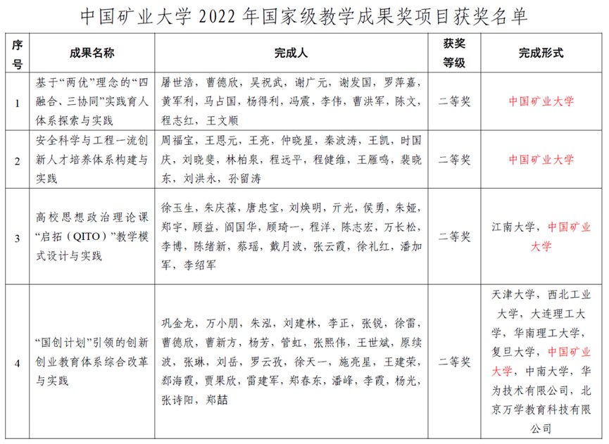 7月24日,教育部公布了2022年国家级教学成果奖。我院教师作为主要完成人的《安全科学与工程一流创新人才培养体系构建与实践》成果奖项目获高等教育国家级教学成果二等奖。
