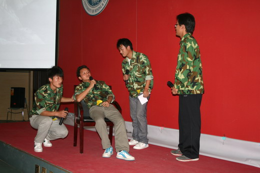 晚上7点30分,本场比赛正式开始。从预赛中遴选而出的8支代表队的选手此番重新出发,以自身精彩的表演与配音再现战争年代里革命前辈艰苦卓绝、百炼成钢的无尽求索。《集结号》的号角响起,风声耸动,危险重重,死去的战士,悲痛的战友,激昂的热血,融汇凝结在了李时雨等同学专注的配音之中,令人无限震撼。充满了革命气息的影片《林海雪原》,不仅需要个人的精准配音,更重要的是团队的默契协作,一句台词,一个眼神,一个手势,皆贴近背景,饱含深意,董仲全,禄利刚等同学的精彩演绎博得了在场观众的热烈掌声。革命岁月里,巾帼不让须眉。来自我院的李丹萍,高艳等同学,一腔凌云意,一展冷傲骨,融合了女子独有的柔美以及革命战士的刚毅,将影片选段《女子敢死队》诠释得别般生动,引得全场掌声雷动。每组精彩的表演之后,附带影片知识问答环节,在配音竞技上互不相让的各组同学在此环节中亦表现不俗,鲜少出错,充分展示了同学们对影片及其背景的透彻了解,更体现了他们对国、对党的热忱关切。
