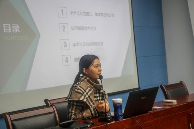 报告会上,陈老师结合自身的实践经验和研究成果,理论联系实际,首先提出“创新思维要敢于想象,乐于交流”的科研认知,接着从学术论文的定义、基本特征和分类、如何撰写学术论文、学术论文的投稿和发表以及插图表格和公式等四个方面对学术论文的撰写和发表做了深入浅出的讲解。陈老师强调三条思路:一是“知其本,了其性”,对于实验材料要熟知它的特性,并在确保安全的前提下进行研究;二是“多选择,敢交叉”,对于论文写作构思的角度要广,视野不能局限于安全;三是“乐业与坚持”,对于实验过程或是论文发表过程不要因为失败而放弃,要勇于在失败中总结经验,重新开始,更重要的是持之以恒。最后,陈老师就研究生毕业发展方向,从阅历和理念两方面做了相应的战略指导。在场的学生认真地学习报告精髓,进一步开阔了学术视野。