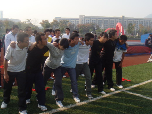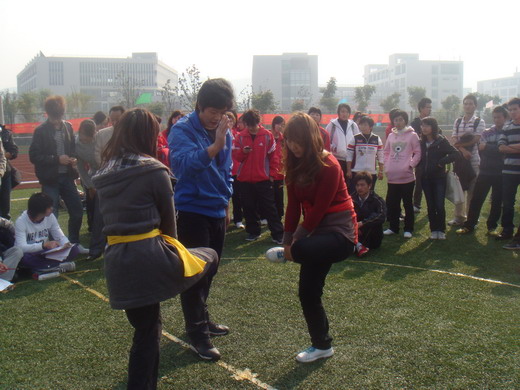 其中,在男子十人十一足的比赛中,我院选手团结一心,既稳又快地完成了比赛,获得了第七名的好成绩。男子脚斗比赛中,我院选手几乎以战无不克的绝对优势,登上了季军宝座。女子脚斗的角逐中,我院选手顽强拼搏,坚持不懈,最终名列前八。在“众人一条心”的比赛中,我院选手肩并肩,健步如飞,取得了第七的好成绩。