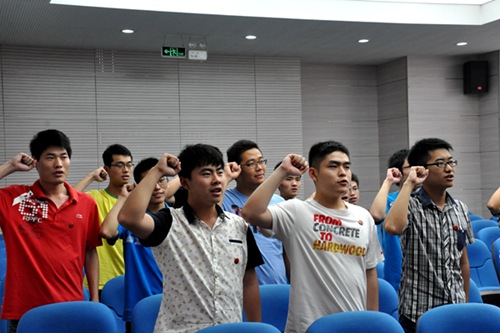 首先,孙留涛老师向党员同学们介绍了入党宣誓仪式的重要意义,指出举行入党宣誓仪式一方面是党对党员的基本要求,另一方面是党员对党表示自己愿意承担的政治责任,对党的坚定信念和为党的事业奋斗终身的决心。接着,在场所有党员面向党旗站立,在领誓人党员工作站站长李先赞同学带领下慷慨激昂地宣读誓词。同学们真诚、恳切、坚定的话语在活动室内响起。新的学生党员在誓言中感受到了入党的神圣和自己肩上的重任。接着,10级级朱云飞同学作为学生党员代表发言,他在发言中倡议所有学生党员要不断加强党性修养,端正学习态度,明确学习目标,积极参加国产精品