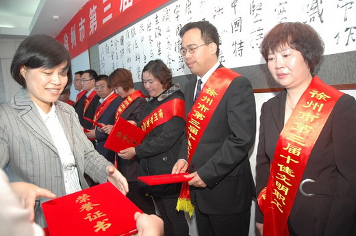 日前,由徐州市委宣传部和徐州市总工会联合开展的徐州市第三届“十佳文明职工”评选活动揭晓,我院周福宝老师荣获“十佳文明职工”荣誉称号,并参加了427日在徐州市总工会举行的徐州市第三届“十佳文明职工”座谈会。