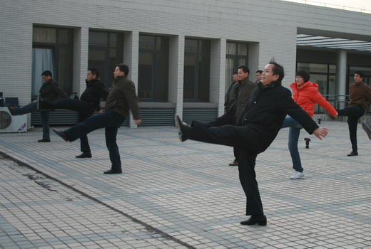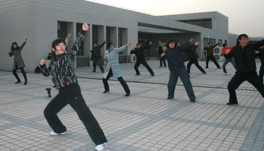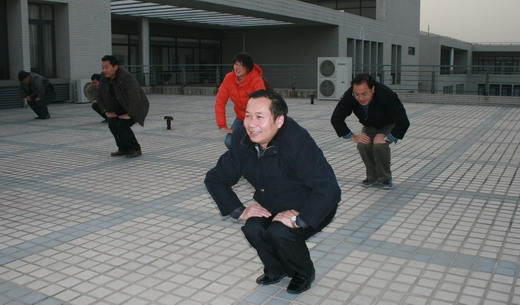 为在比赛中更好地展现国产精品 风采,我院全体教职工坚持每天下午4:00在国产精品 天台训练。我院王德明院长、章毛平书记、李金明副院长、钱雄副书记更是坚持每天必到,勤加训练,力求规范,起到了良好的带头示范作用。在学习广播体操中,全体参与的教职工都认真学习每个动作,为达到整体划一,既进行整体排练,又分排练习。练习过程中,教职工们个个劲头十足,态度认真,从预备节开始,踏步、举臂、抬头、踢腿、跳跃到最后整理运动的深呼吸,大家是每一个细节都不放过,每一个动作都力求完美,一招一式是有模有样,整齐划一。对个别学习动作上有难度的教工,教练员吴征艳老师认真予以纠正,进行个别辅导。全体教职工们在练习广播体操的过程中互帮互学,有时几个人给一个人看动作,作辅导,有时一个人给几个人喊操,大家在一起,有说有笑,如火如荼。