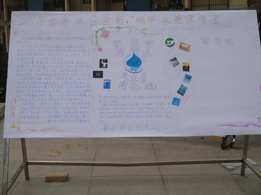 活动伊始,志愿者们通过以2011世界水日主题“城市水资源管理”为内容的展板向过往的同学普及了世界水日的相关知识;同时,志愿者们还通过印发宣传单的形式来向广场上的其他同学发起了“节约用水,关“住”点滴”的倡议书,倡导同学们珍惜来之不易的水资源。随着活动的深入,志愿者们还穿插以“知识普及,有奖问答”的小游戏,带动全场气氛的同时,也使节约用水的理念更加深入人心。活动中,同学们积极参与,纷纷在留言板上留言,并表示愿意为创建节约型校园贡献自己的一份绵力。