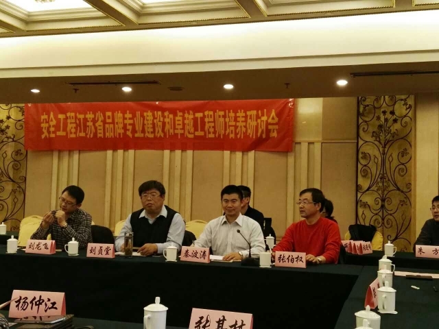 与会人员紧紧围绕“安全工程江苏省品牌专业建设和卓越工程师培养”、“安全科学与工程学科建设与研究生培养”、“安全工程专业应用型人才培养(实践环节教学)”等主题进行了深入的研讨交流。我院党委书记章毛平、副院长朱晓东、秦波涛、专业建设负责人刘贞堂等一行6人出席会议。秦波涛副院长作了题为“江苏省安全工程品牌专业建设探索”的特邀报告,刘贞堂教授在安全科学与工程学科建设与研究生培养以及卓越工程师培养专题研讨中作了主旨发言。党委书记章毛平、副院长朱晓东还专程到南京工业大学安全科学与工程国产精品