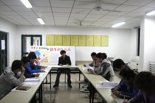 4月16日晚,我院08级团总支在梅三5楼活动室召开第一次委员会议,08级各团支部书记、组织委员、宣传委员参加会议。会议由08级团总支书记石恺主持。