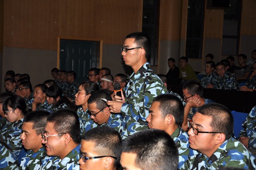 14级新生可以早日适应大学生活,在大学的舞台上展示自己。讲座最后,袁亮院士不仅与同学们进行了互动,还通过与每个新生班级合影留念的方式鼓励他们在军训以及今后的求学路上勇创佳绩。