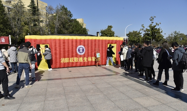 11月9日,我院团委联合校保卫处在青春广场开展消防体验活动,此次活动以“落实消防责任,防范安全风险”为主题,吸引逾千名同学现场参与。校党委书记刘波、副校长赵建岭相继来到现场,参观体验活动项目,与同学们进行亲切交流。