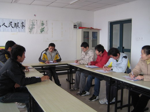 会议的第一项内容是明确党支部支委各自的职责要求,以便更好地开展工作;紧接着,由各位学生党员就08级各班推荐的10名积极分子的生活、学习、工作情况进行评价,实事求是,本着公平、公正、公信和优中选优的原则,最终无记名投票定出7名预发展对象的名单;会议同时将与预发展对象的联系、进行谈话和准备相关资料,分配到人,基本上每位党员负责一名预发展对象的具体事宜。