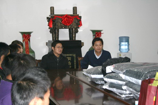 仪式上,钱书记和孙老师发表了简短讲话。钱书记表示,鉴于徐州气温变化大而且冬季寒冷,我院党政领导和辅导员老师考虑到部分同学家庭条件无法购买御寒衣物,难以抵御低温的侵袭,特为10级部分家庭经济困难同学发放寒衣,并嘱咐他们加强营养,保持身体健 康。同时,他勉励同学们刻苦学习,积极进取,争取早日成才,摆脱贫困。