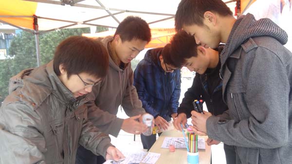 党员工作站送出的精美礼品。新颖独特的活动形式以及丰厚的奖品吸引了大批的学生前来参与。参与的学生通过各种方式表达自己的见解。有的学生当场构思一二九运动的活动标语,有的学生通过一段话表达自己对爱国主义学生的缅怀与敬佩,而拥有一定绘画功底的学生则用漫画的形式来纪念一二九运动。来往的学生络绎不绝,场面异常热闹。临近活动尾声时,安全国产精品