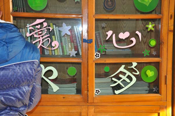 中午12点20,祁钰副主席带领全体部员在东门集合,部员们抱着很多从学生们那儿募捐来的书,兴致高昂的向桥上中学出发。到了桥上中学后,副主席王琪瑶早已等候在那里,她已经在学校向老师们说了他们的来意,老师们非常高兴,连连感谢学生们,并热心给部员们收拾了一个地方建立爱心书角。部员们立刻行动起来,副部王琦瑶把水打来,部员们仔细的把柜子清理干净,随后部员们便开始摆放书籍。书的种类繁多,有《新华字典》,英语阅读,历史文献等有助学习的书籍,也有《假如给我三天光明》、《蛙》等完善人格的书籍,更有《看天下》、《博客天下》等了解时事,关注民生的书籍。部员们按照分类把书籍摆放整齐。并且部员们还买了贴纸,焦扬同学还剪了爱心书角这四个字,贴在玻璃上。部员们齐心协力,建立了一个漂亮干净的爱心书角。下午两点半,,部员们跟老师们挥手告别,活动圆满结束。
