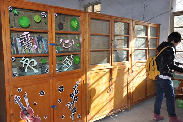 青协副主席祁钰,王琪瑶携带全体部员于12月7日到桥上中学建设爱心书角。