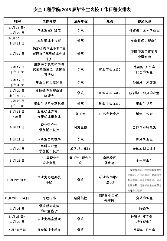 国产精品 2016届毕业生离校工作日程安排表